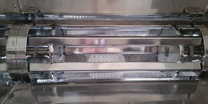 通過機(jī)械傳動(dòng)使?jié)L筒往復(fù)擺動(dòng),將物料從篩網(wǎng)中擠出制成顆粒或粉碎制粒。